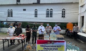 Dalam release akhir tahun tersebut turut dimusnahkan barang bukti temuan dan sitaan berupa 62 botol Vodka merek Topi Koboi ukuran 330 ml, 12 botol Anggur Merah merek Arjuna Kencana ukuran 620 ml, 3 botol bir merek Prost ukuran 330 ml, 7 botol bir merek Prost ukuran 620 ml, 1 botol bir merek bintang ukuran 620 ml, 4 jerigen ukuran 5 liter Minuman Lokal jenis Cap Tikus, 15 btl minuman lokal jenis Cap Tikus ukuran 600 ml, 300 liter minuman cap tikus kemasan, Ganja sebnyak 1,7 kg, untuk total ct sekitar 450 liter dan di perkirakan skitar Rp. 150.000.000 ,-