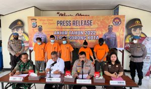Kota Sorong – Polres Sorong Kota melaksanakan Release Akhir Tahun 2022,tentang situasi wilayah dan penanganan tindak pidana serta pencapaian yang diperoleh selama 1(satu) tahun dilanjutkan dengan pemusnahan barang bukti yang dilaksanakan di Lobby Mapolres pada Sabtu (31/12/2022).