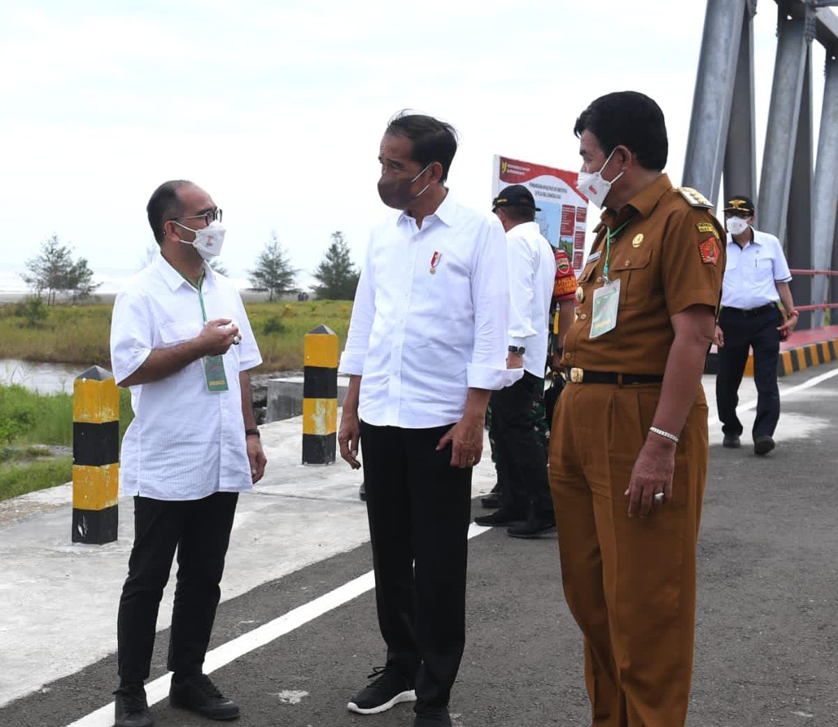 Presiden Joko Widodo melanjutkan kunjungan kerjanya di Provinsi Sumatra Utara dengan meninjau infrastruktur Jalan Nasional Lingkar Nias dan Jembatan Idano Sibolou di Kabupaten Nias Barat, pada Rabu, 6 Juli, 2022.