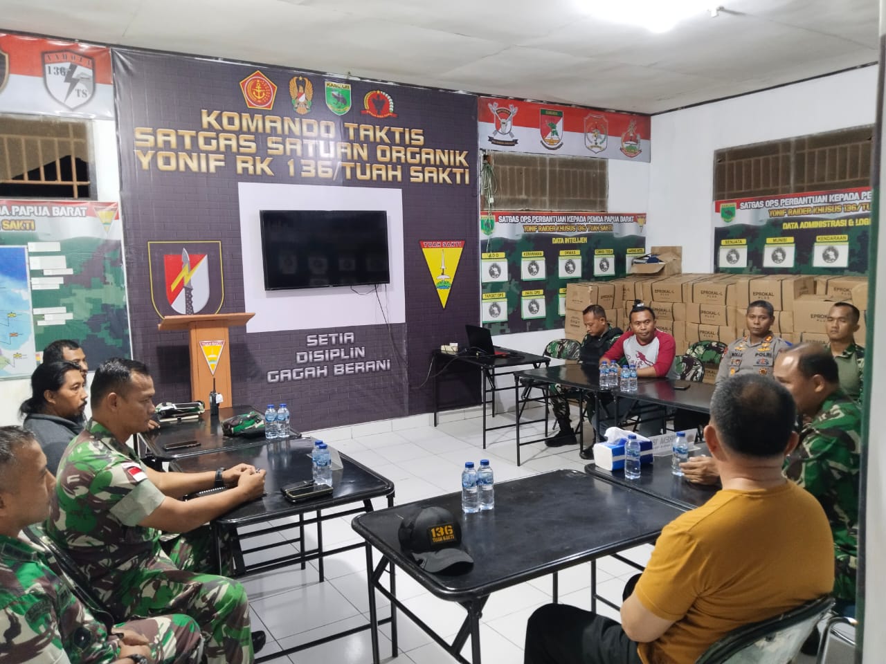 Kabupaten Maybrat Papua Barat Daya – Komandan Korem (Danrem) 181/PVT, Kolonel Juniras Lumbantoruan, S.Sos.,M.Si beserta rombongan didampingi Dandim/1809 Maybrat Letkol Inf Yohanis Andi Wibowo, Melaksanakan Rapat Permasalahan Pengungsi dan Pembahasan Tentang Penegakan Perda Sweeping Miras di Kabupaten Maybrat Provinsi Papua Barat Daya, Minggu (5/2/2023).