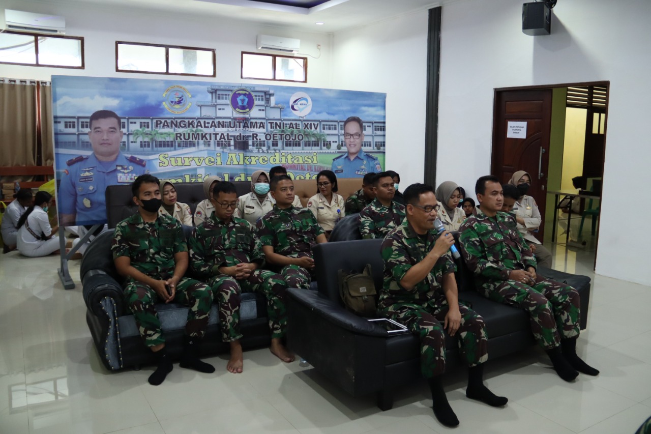 Sorong Papua Barat – Kepala Rumah Sakit Angkatan Laut ( Karumkital) dr. R. Oetojo Letkol Laut (K) dr. Adventy Nahan, SpB., melaksanakan Akreditasi Rumah sakit Angkatan Laut (RSAL) dr. Oetojo Sorong secara virtual dengan Lembaga Akreditasi Mutu dan Keselamatan Pasien Rumah Sakit (LAM- KPRS) bersama Dr. dr. Asvin Nurulita, MKes, SpPK(K), dan Ns. Suhatman A. Hakim, SKep, MKep, sebagai Surveior bertempat di gedung Samadikun RSAL, Jl. Ahmad Yani, Klademak, Kecamatan Sorong Manoi, Kota Sorong, Papua Barat. Selasa (04/10/2022).