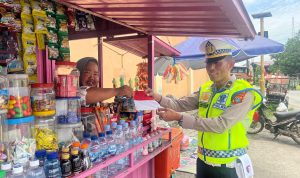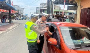 Dalam menyapa dan membagikan bendera merah putih tersebut, secara langsung dilaksanakan oleh Kasat Lantas AKP Simon E Simatupang.SH.MH didampingi KBO Lantas, para Kanit dan para personil Sat Lantas Polres Batu Bara.