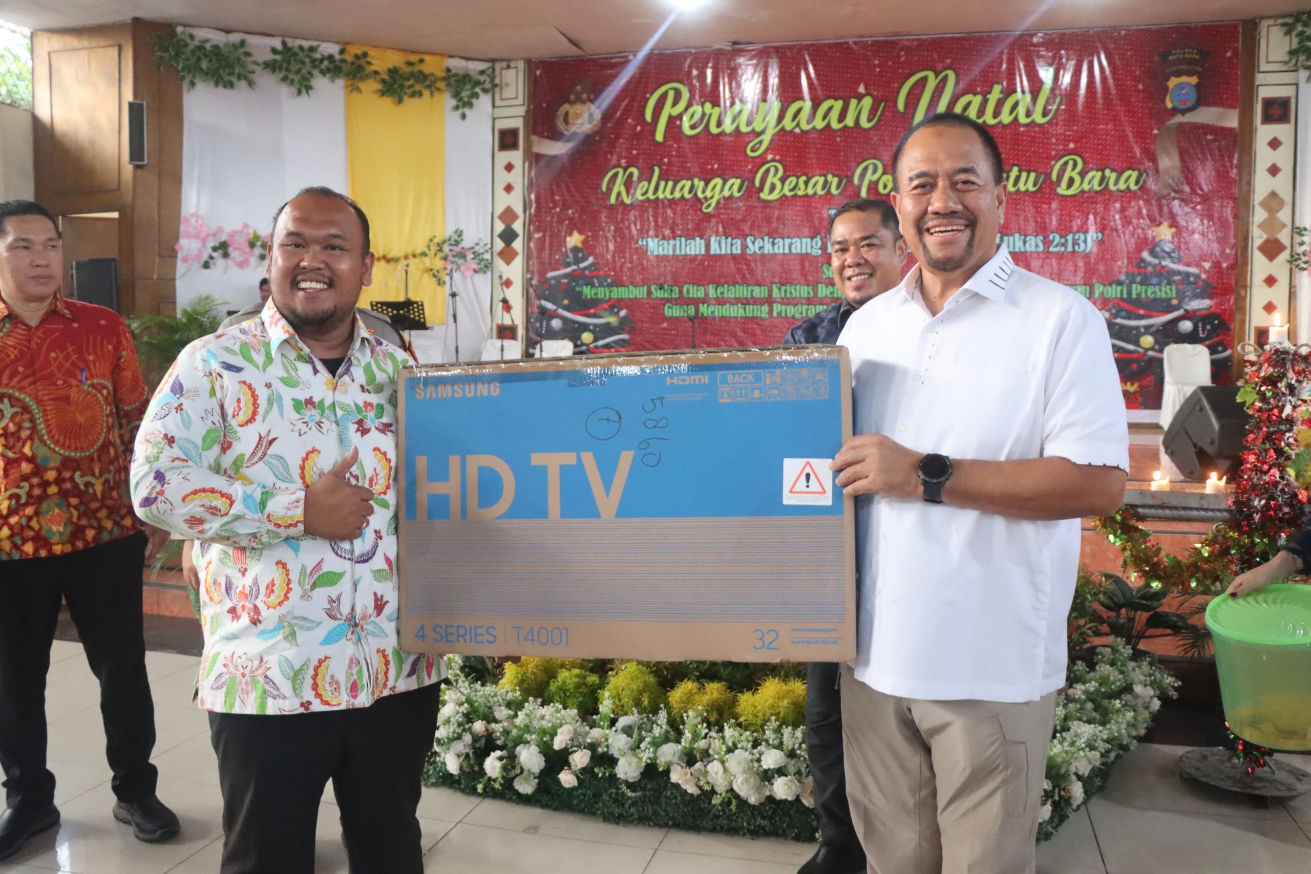 Personil Polres Batu Bara secara langsung melaksanakan penyambutan perayaan Natal 2024 di Aula Gereja HKBP Lima Puluh. 17 Desember 2024.