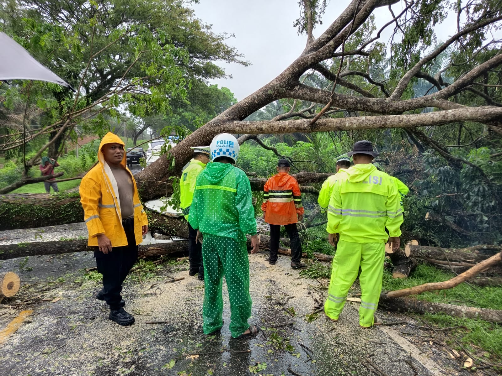 Selain mengantisipasi kemacetan jalan Kasat Lantas bersama beberapa personil yang bertugas juga mengevakuasi pohon tumbang dan beberapa mobil mogok di sekitaran banjir dan pohon tumbang, sebagai upaya terbaik untuk menghindari terjadinya kemacetan panjang yang sangat berpotensi menyulitkan masyarakat pengguna jalan.