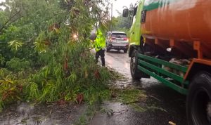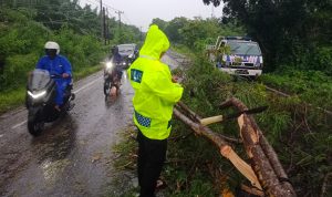 Tidak hanya mengevakuasi pohon tumbang, sebagian personil yang bertugas juga terus berupaya mengatur arus lalu lintas untuk menghindari terjadinya kemacetan panjang.