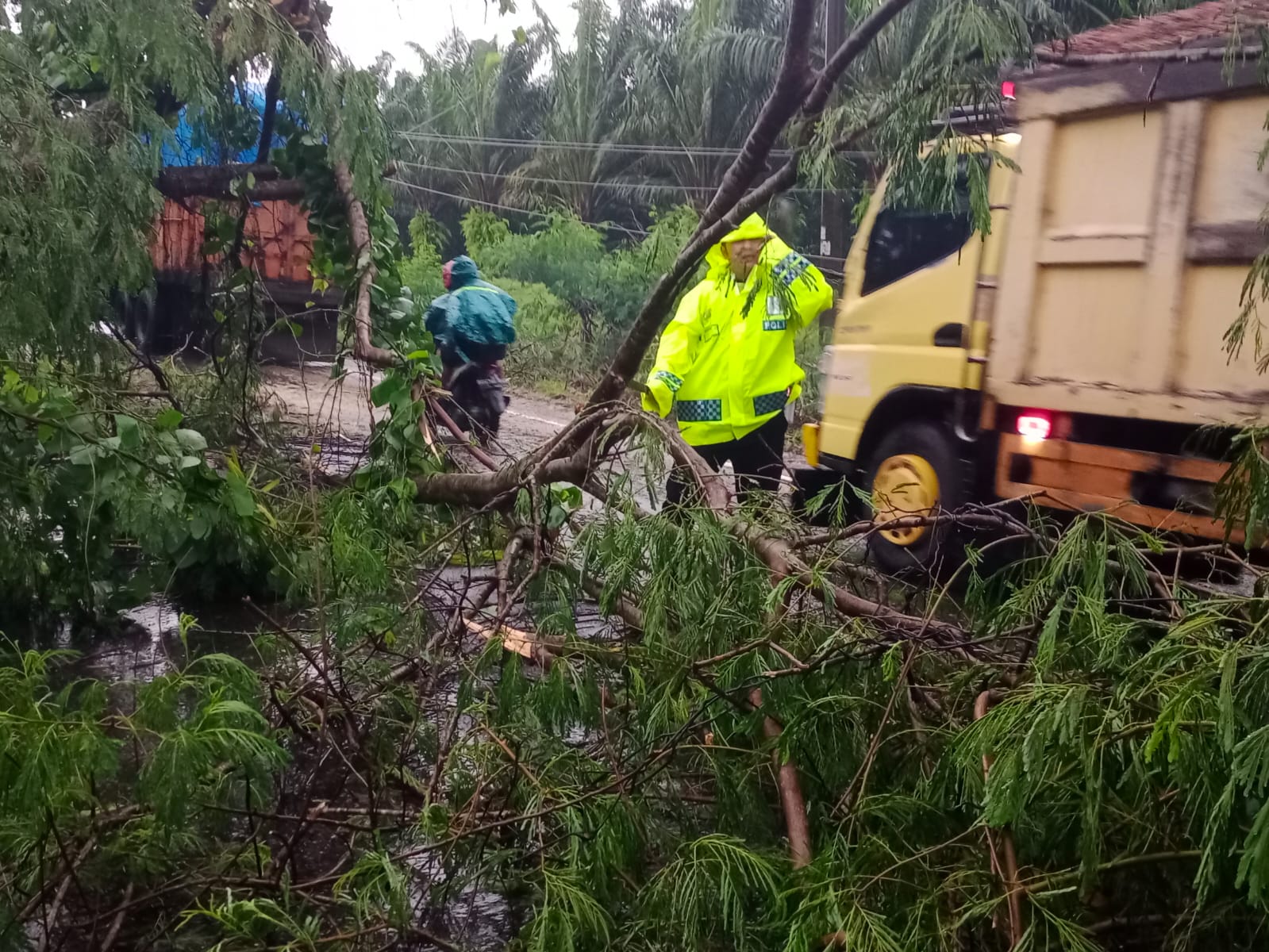Bergerak Cepat Personil Sat Lantas Polres Batu Bara langsung evakuasi  pohon tumbang di sekitaran Jalinsum PT Socfindo yang menghambat perlintasan jalan Medan menuju Kisaran. 1 Oktober 2025 pukul 08.00 wib.