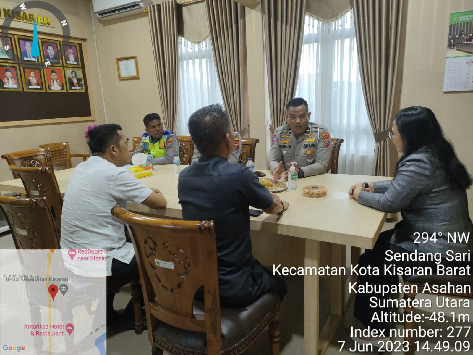 Kasat Lantas Polres Batu Bara AKP HW.Siahaan.SH melalui Kaurbin OPS Sat Lantas Ipda Kiwondo Manurung, Kanit Gakkum Ipda Elon Sitinjak.SH dan Kaurmintu Bripka Tarida P.Sitinjak.SH secara langsung hadiri rapat koordinasi tentang persamaan persepsi dalam putusan pelaksanaan Tilang Manual. 7 Juni 2023 Pukul 15 : 00 wib, bertempat di Pengadilan Negeri Kisaran.
