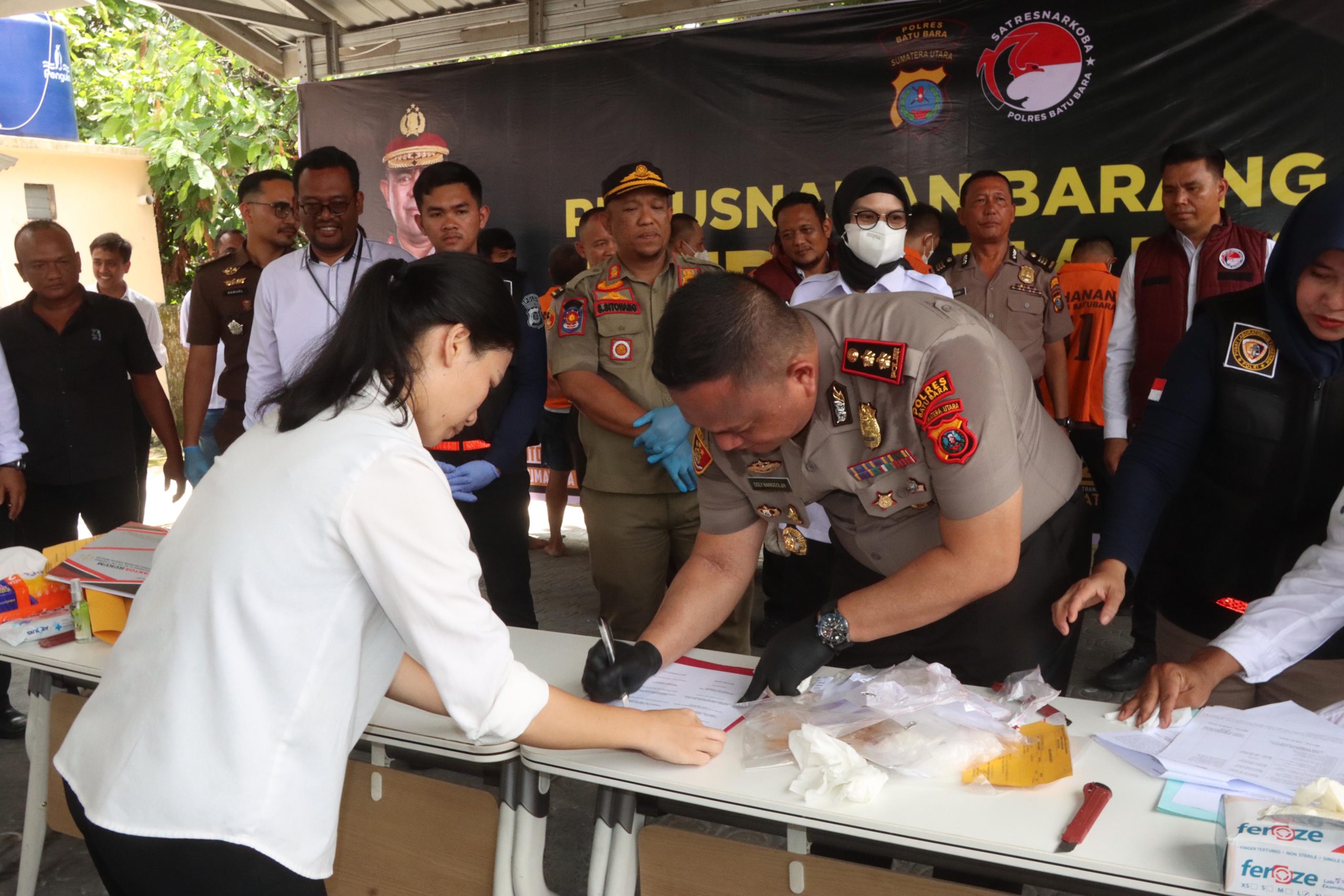 Barang bukti yang dimusnahkan dari kasus bernomor LP/A/272/XII/2025, LP/A/273/XII/2025, LP/A/40/II/2026, dan LP/A/56/III/2026, para pelaku berasal dari beberapa Kecamatan, se Kabupaten Batu Bara pelaku yang berasal dari Kabupaten Asahan ditemukan barang bukti senjata airsoft gun merk Pietro Beretta, pil MDMA/Ekstasi warna merah hijau, dan beberapa unit handphone berikut mobil.