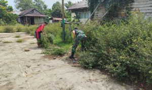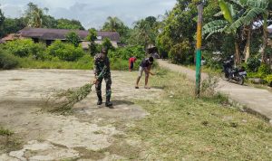 Satgas Pamtas RI-Malaysia Yonif 645/Gty dipimpin Pratu Rohim beserta 2 Orang anggota bersama masyarakat Dusun Saparan Melaksanakan Karya Bakti pembersihan Lapangan Voly dalam rangka menyambut lomba 17 Agustus dan sekaligus penyerahan Sarana Kontak Olahraga Bola Voly dan Net Voly, bertempat di Dusun Saparan Ds. Kumba Kec. Jagoi Babang Kab. Bengkayang KALBAR. Sabtu, (23/07/2022)