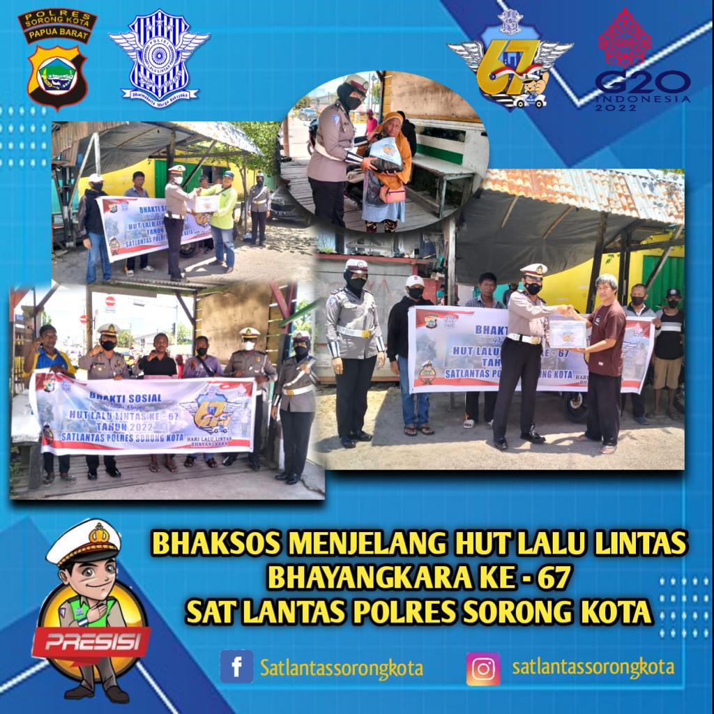 Menurut Kapolres Sorong kota AKBP Johannes Kindangen S.IK , M.SI.yang di wakili oleh Kasat lantas polres Sorong kota Iptu Ryo Guntur Triatmoko S.Tr.K ketika di hubungi wartawan menjelaskan bahwa, kegiatan tersebut dalam rangka menyambut Hari Lalu Lintas Bhayangkara ke 67 dengan tema “Polantas Pulih dan Bangkit Bersama Menuju Indonesia Maju”.