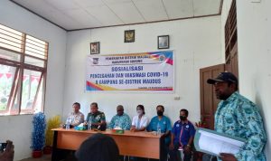 Sorong Papua barat – Danramil 1802-06/Klamono Kapten Inf Shubi Shagi menghadiri kegiatan sosialisasi pencegahan Covid – 19 dan vaksinasi di wilayah Distrik Maudus Kabupaten Sorong Provinsi Papua Barat.selasa (27/09/2022)