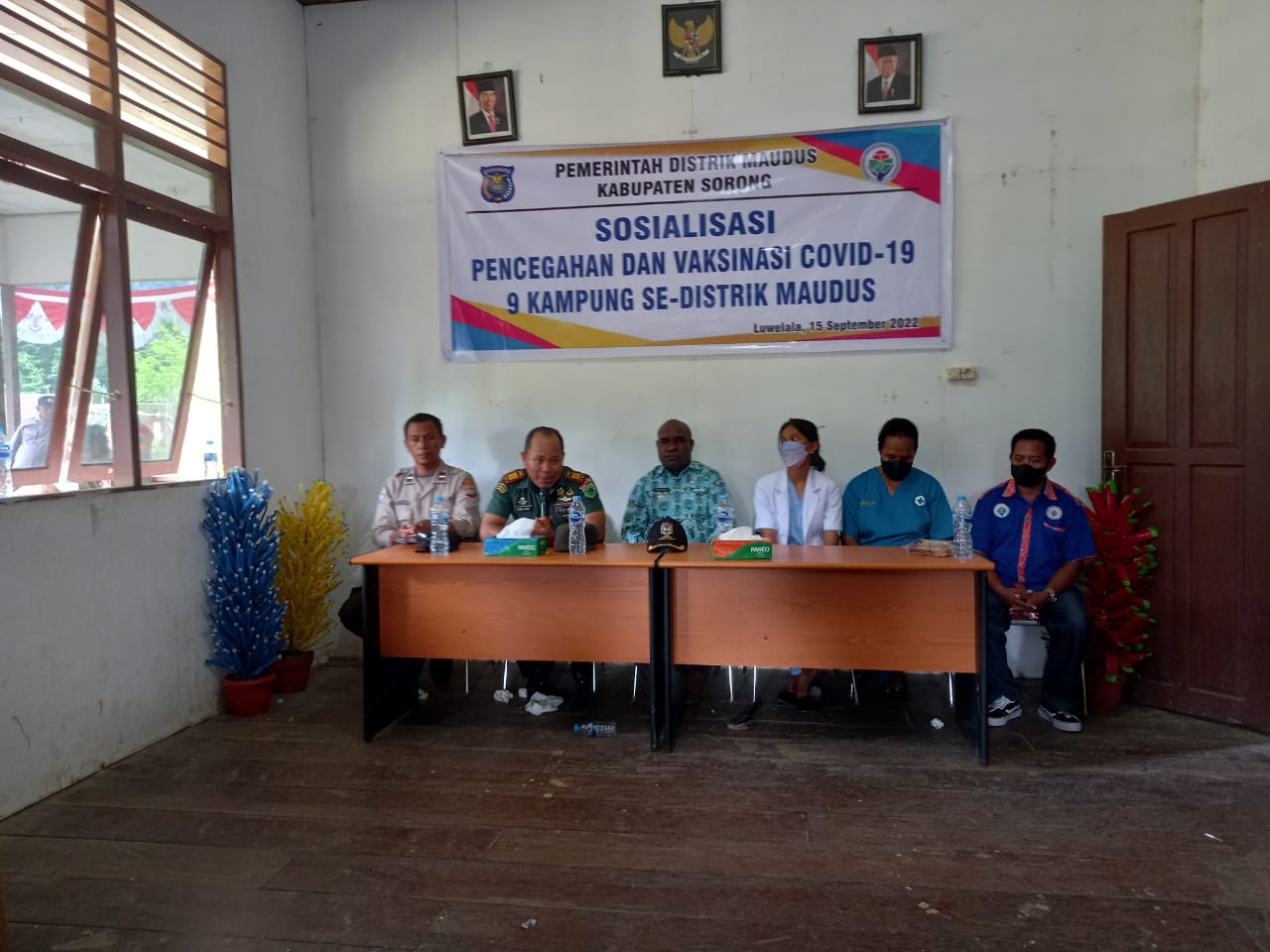 Sorong Papua barat – Danramil 1802-06/Klamono Kapten Inf Shubi Shagi menghadiri kegiatan sosialisasi pencegahan Covid – 19 dan vaksinasi di wilayah Distrik Maudus Kabupaten Sorong Provinsi Papua Barat.selasa (27/09/2022)