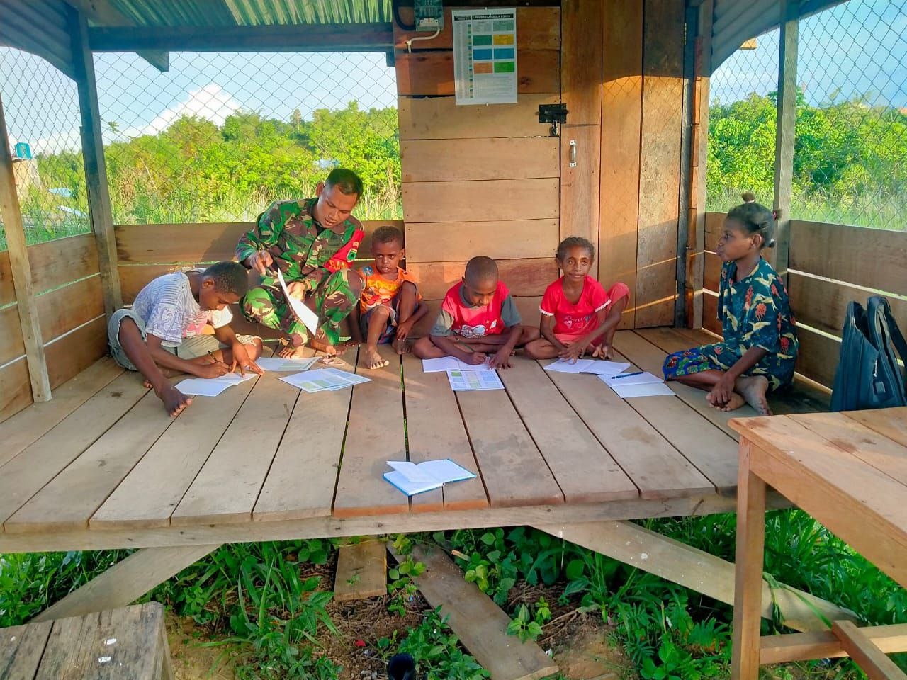 Kegiatan belajar dan  mengajar menulis, membaca serta mengenal Huruf hingga Berhitung kepada anak anak merupakan salah satu bentuk pelaksanaan Program TNI AD dan Pemerintah dalam mengatasi Buta Aksara, di Wilayah Kabupaten Sorong.