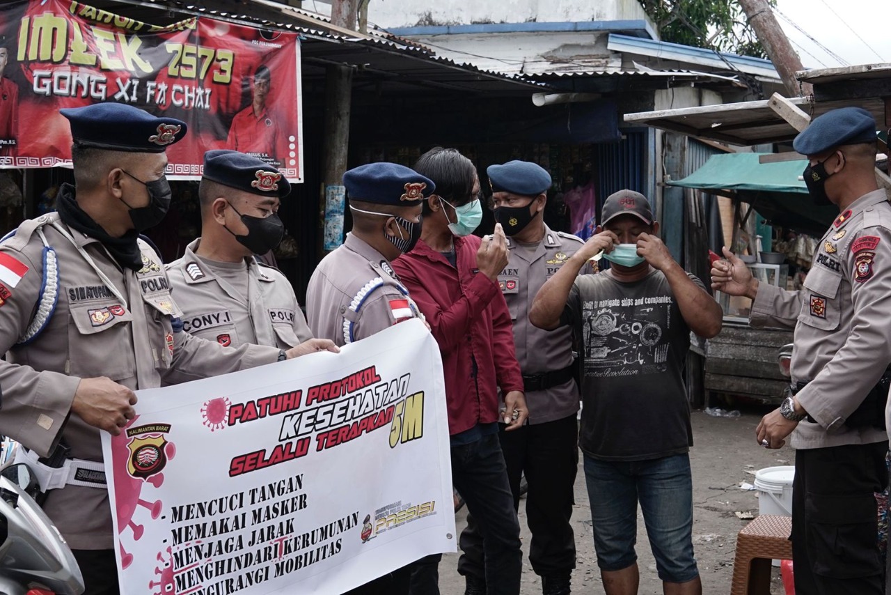 Selain memberikan himbauan, disini personel Satbrimob Polda Kalimantan Barat juga memberikan masker kepada masyarakat yang tidak menggunakan masker dan juga memberikan edukasi kepada mereka akan pentingnya mematuhi protokol kesehatan kapan pun dan dimana pun mereka berada.