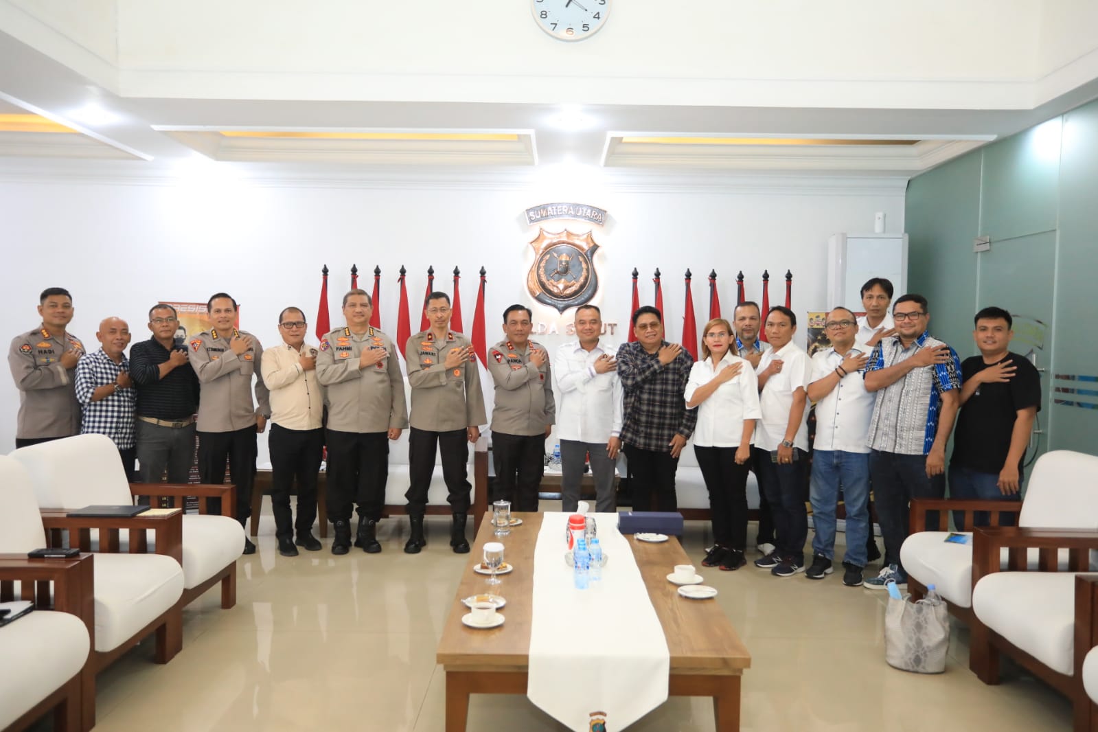 Menjelang Hari Pers Nasional (HPN) 2023 di Kota Medan, para Konstituen dewan pers, Persatuan Wartawan Indonesia (PWI) Sumut, Jaringan Media Siber Indonesia Sumut dan Serikat Media Siber Indonesia (SMSI) Sumut silaturrahmi dengan Kapolda Sumatera Utara Irjend Pol RZ Panca Putra Simanjuntak bersama Wakapoldasu Brigjen Pol Jawari beserta PJU Poldasu, di Ruang Kerja Kapoldasu, Selasa (31/1).