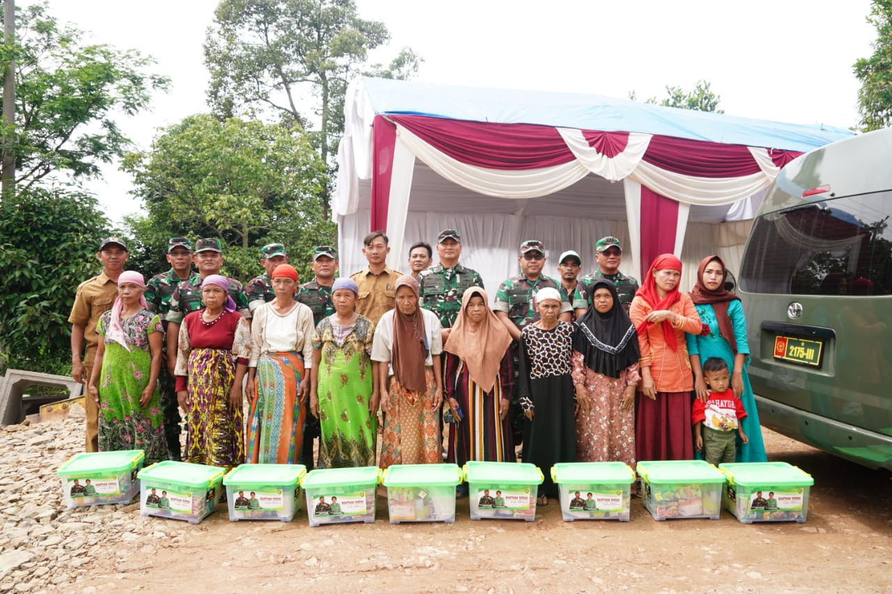 Selepas melakukan peninjauan pembangunan jalan, Pangdam memberikan bantuan sosial berupa paket sembako yang diberikan secara simbolis kepada 10 orang warga masyarakat sekitar, kemudian Pangdam dan rombongan meninjau Situ Nyungcung yang berlokasi di Desa Kampung Sawah, Kec. Rumpin Kab. Bogor.