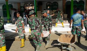 Sorong Papua Barat – Masjid merupakan tempat suci bagi umat Islam, tempat bersujud dan beribadah kepada Allah. Masjid merupakan pusat pembinaan iman umat Islam, diantara ibadah yang sangat agung adalah memakmurkan masjid. Untuk itu Korem 181/PVT secara gotong royong membangun Masjid Al-Mujahidin Korem 181/PVT Sorong, Papua Barat, Kamis (29/9/2022).